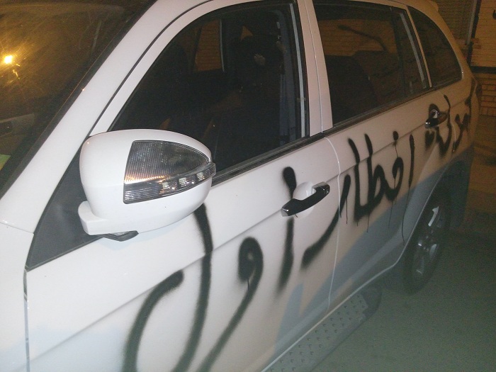 سعید فتحی سرپرست یزد فردا طبس / در ساعت 10:30 دقیقه بعداظهر روز دوشنبه مورخ 94/01/24 در حالیکه اعضای محترم شورای اسلامی در جلسه رسمی شورا مشغول به خدمت بودند ، یکی از شهروندان با مراجعه به دفتر شورای اسلامی واقع در سر درب باغ گلشن مراجعه و اظهار داشت که توسط شخص یا اشخاصی مغرض و معلوم الحال بر روی خودرو شخص آقای علیرضا عبدالرحیمی نائب رئیس محترم شورای اسلامی شهر طبس نوشته هایی توهین آمیز و غیر شرعی و ضد اخلاقی با اسپری رنگ مشکی در اطراف خودرو ایشان نوشته اند که جلسه شورای اسلامی با تعطیلی نمودن جلسه شورا به محل پارک خودرو که مقابل میدان انقلاب اسلامی (میدان باغ گلشن) مراجعه و شاهدچنین اقدام ووقیحانه بودند.