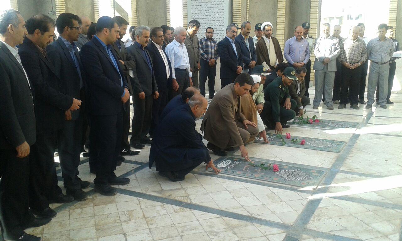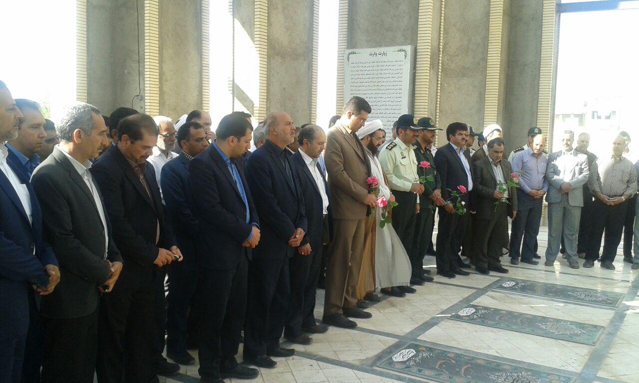 به مناسبت بزرگداشت هفته دولت وگرامیداشت یادشهیدان رجایی وباهنر با حضورفرماندار و مسئولان شهرستان مهریزآیین ادای احترام وتجدید بیعت باشهدای والامقام ،درمحل گلزار شهدای گمنام شهرستان برگزارشد