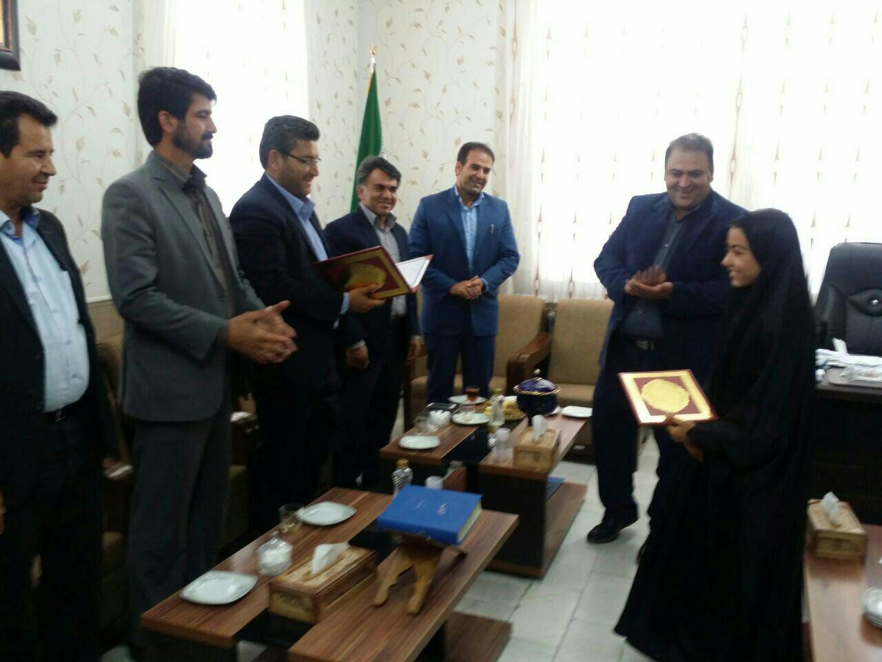 امروز و در واپسين روز كاري سال ١٣٩٤، اعضاي شوراي اسلامي شهر هرات، مدير آموزش و پرورش و سرپرست اداره ورزش و جوانان شهرستان خاتم در دفتر كار فرماندار گرد هم آمدند و از خانم ها فرناز محمدي و زهرا كارگريان دو دانش آموز فوتساليست كه به اردوي تيم ملي فوتسال قهرماني بانوان كشور دعوت شده اند تجليل كردند.