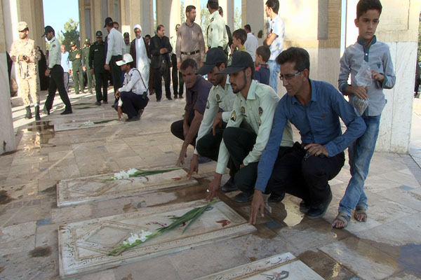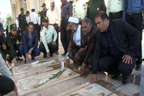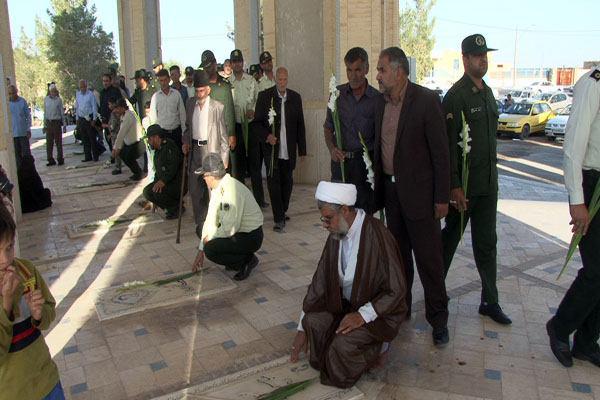 به گزارش روابط عمومی فرمانداری خاتم؛ به مناسبت گرامیداشت یاد و خاطره شهدا و همزمان با دومین روز از هفته دفاع مقدس قبور مطهر شهدای شهرستان خاتم با حضور زاده رحمانی فرماندار و جمعی دیگر از مسئولین قبار روبی و عطر افشانی شد.