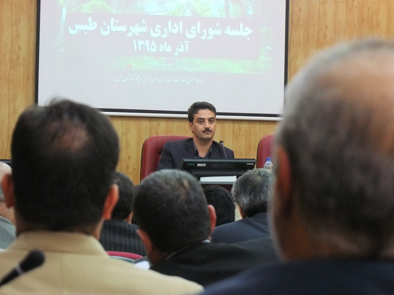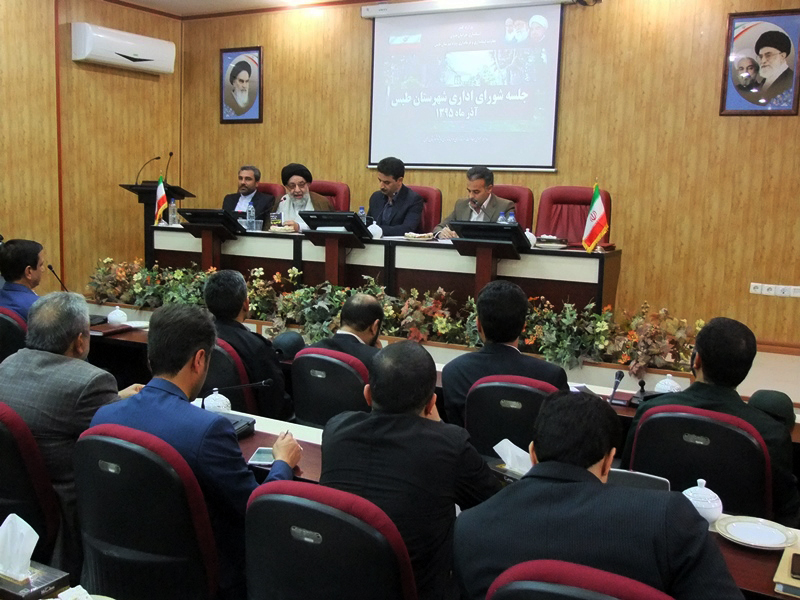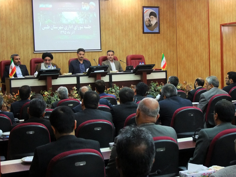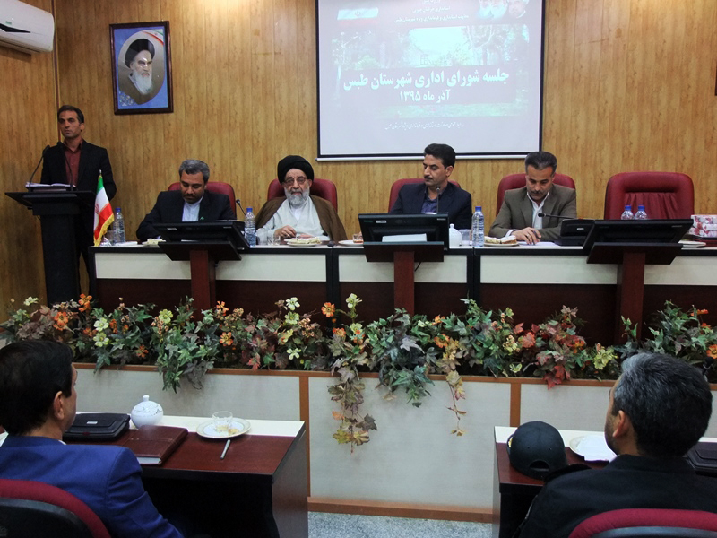 اولین جلسه شورای اداری شهرستان طبس با حضور مهندس طلایی معاون استاندار وفرماندار ویژه شهرستان طبس وامام جمعه محترم ودیگر مسئولین در محل سالن اجتماعات شهید رجایی فرمانداری ویژه طبس .