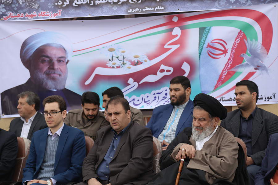 اجراي سرود و دكلمه، برش كيك انقلاب، رهايي كبوتران آزادي و طنين زنگ انقلاب به دست پدر شهيد دهستاني از جمله برنامه هاي اين مراسم بود.