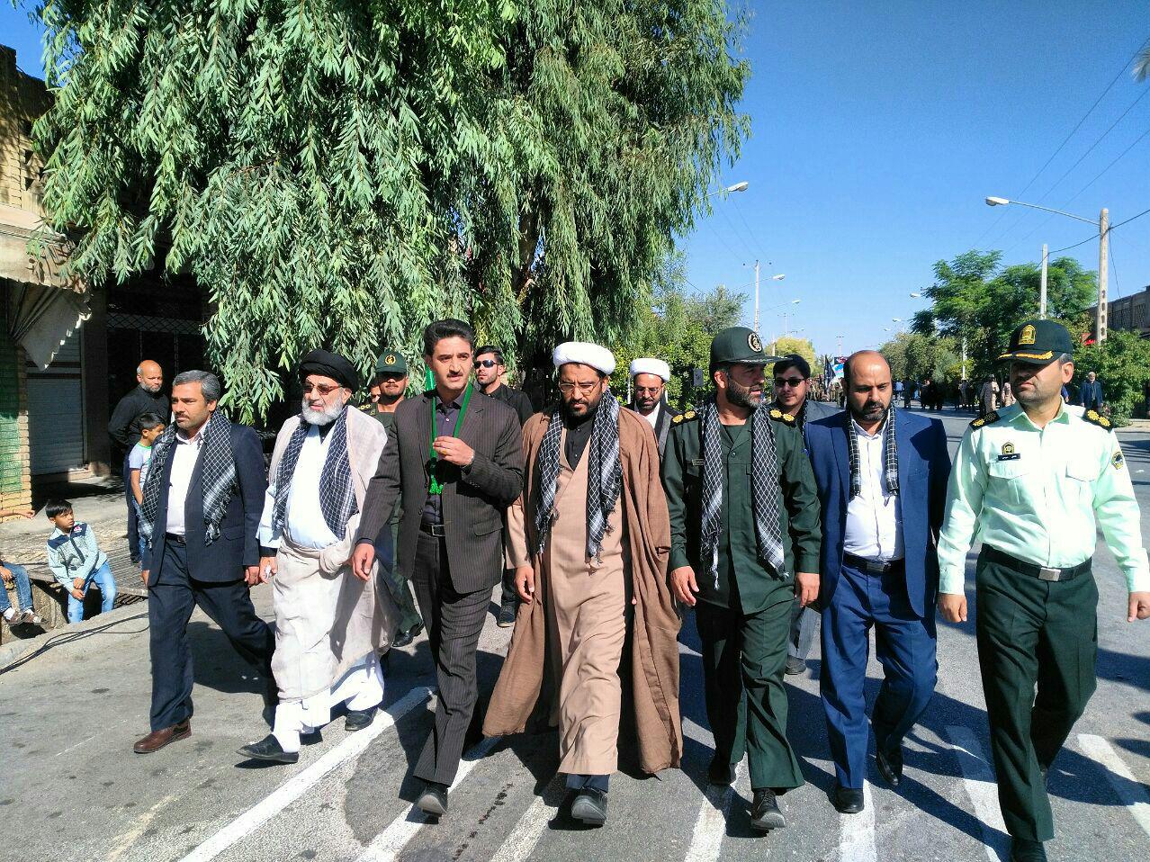 به گزارش خبرنگار یزد فردادر طبس، امام جمعه محترم طبس به همراه معاون استاندار و فرماندار ویژه طبس و سایر مسئولان شهرستان در مراسم رژه نیروهای مسلح به مناسبت آغاز هفته دفاع مقدس یافتند