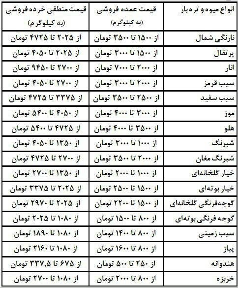 توضیحات و قیمت های عمده فروشی و خرده فروشی منطقی که باید در بازار مصرف در اختیار مردم قرار گیرد در جدول زیر آمده است.