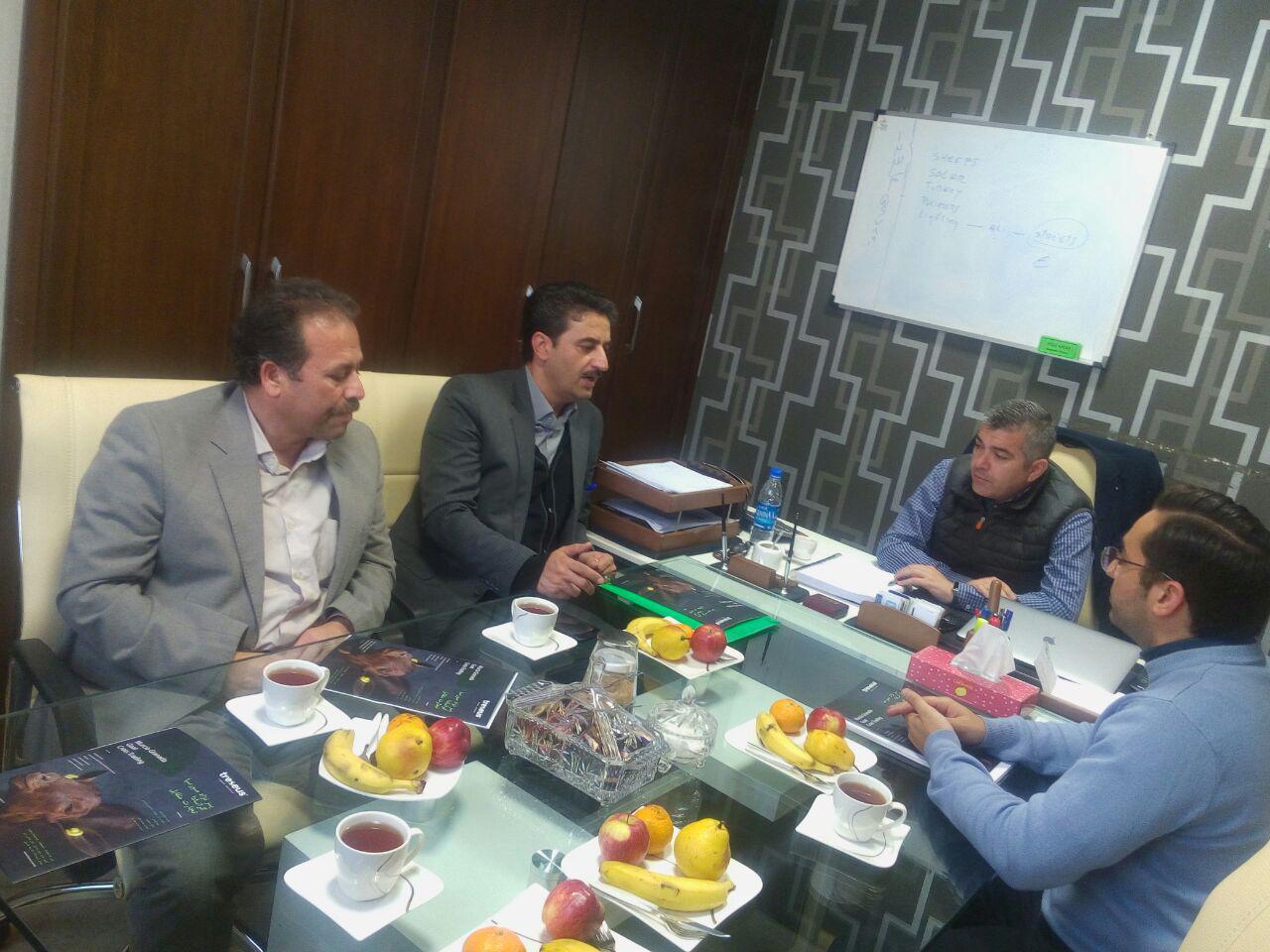 جلسه طلائی مقدم معاون استانداروفرماندارویژه شهرستان طبس با شهرستاني مدیر تجارت بين الملل وآقای خوآن فرناندو پنسه سرانو مديرشركت ترسئوس درپایتخت