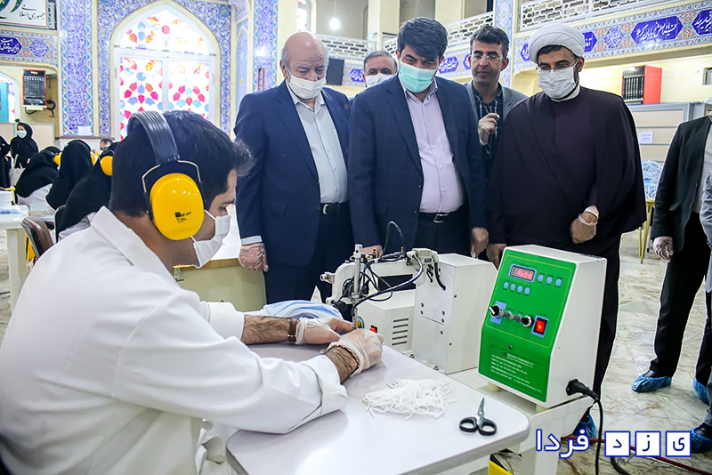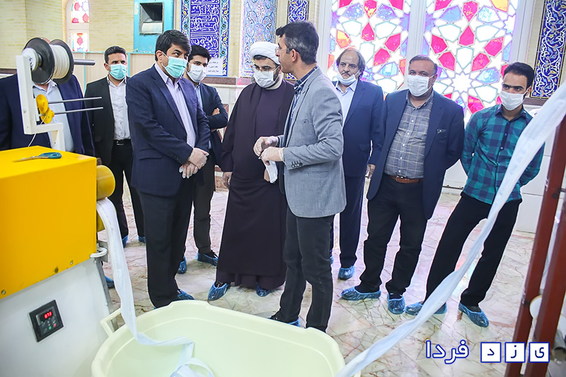 صبح امروزچهارشنبه 10 اردیبهشت دکتر طالبی استاندار یزد به همراه حجت الاسلام والمسلمین صدوقی یادگار امام جمعه فقید یزد و سومین شهید محراب از کارگاه تولید ماسک پزشکی وابسته به خانه فرهنگ صدوقی و با مشارکت شرکت نساجی اردکان و بیمارستان سید الشهدا در مسجد روضه محمدیه بازدید کردند.