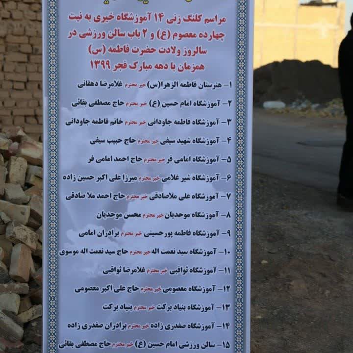 به گزارش روابط عمومی اداره کل نوسازی مدارس استان یزد مصادف با سالروز تولد حضرت زهرا سلام الله علیها و به نیت چهارده معصوم عملیات اجرایی ۱۴ مدرسه در قالب ۱۲۶ کلاس درس و با اعتبار ۵۶ میلیارد تومان در شهرستان میبد با حضور استاندار یزد، نماینده مردم شریف میبد در مجلس شورای اسلامی، مدیران کل نوسازی مدارس و آموزش و پرورش، مدیرعامل و رئیس هیئت مدیره مجمع خیرین مدرسه ساز استان آغاز شد.
