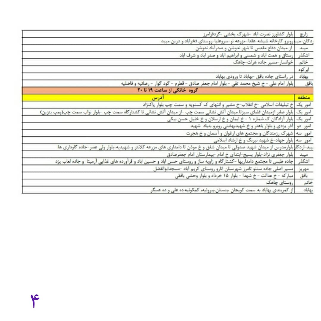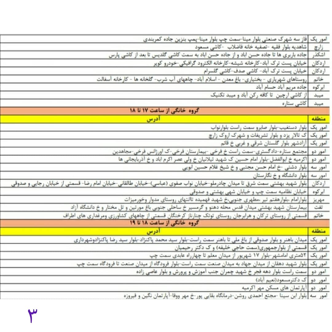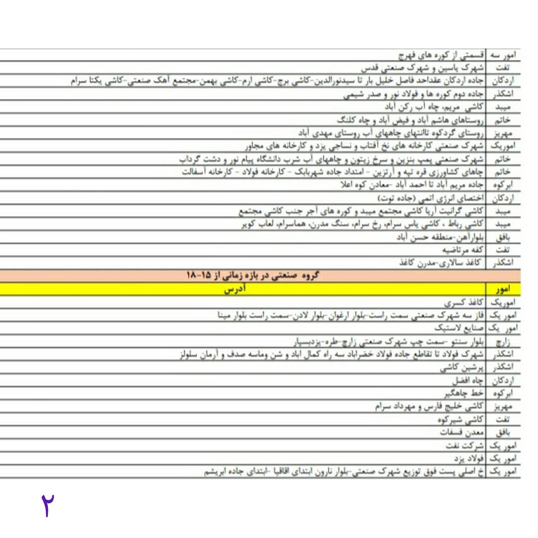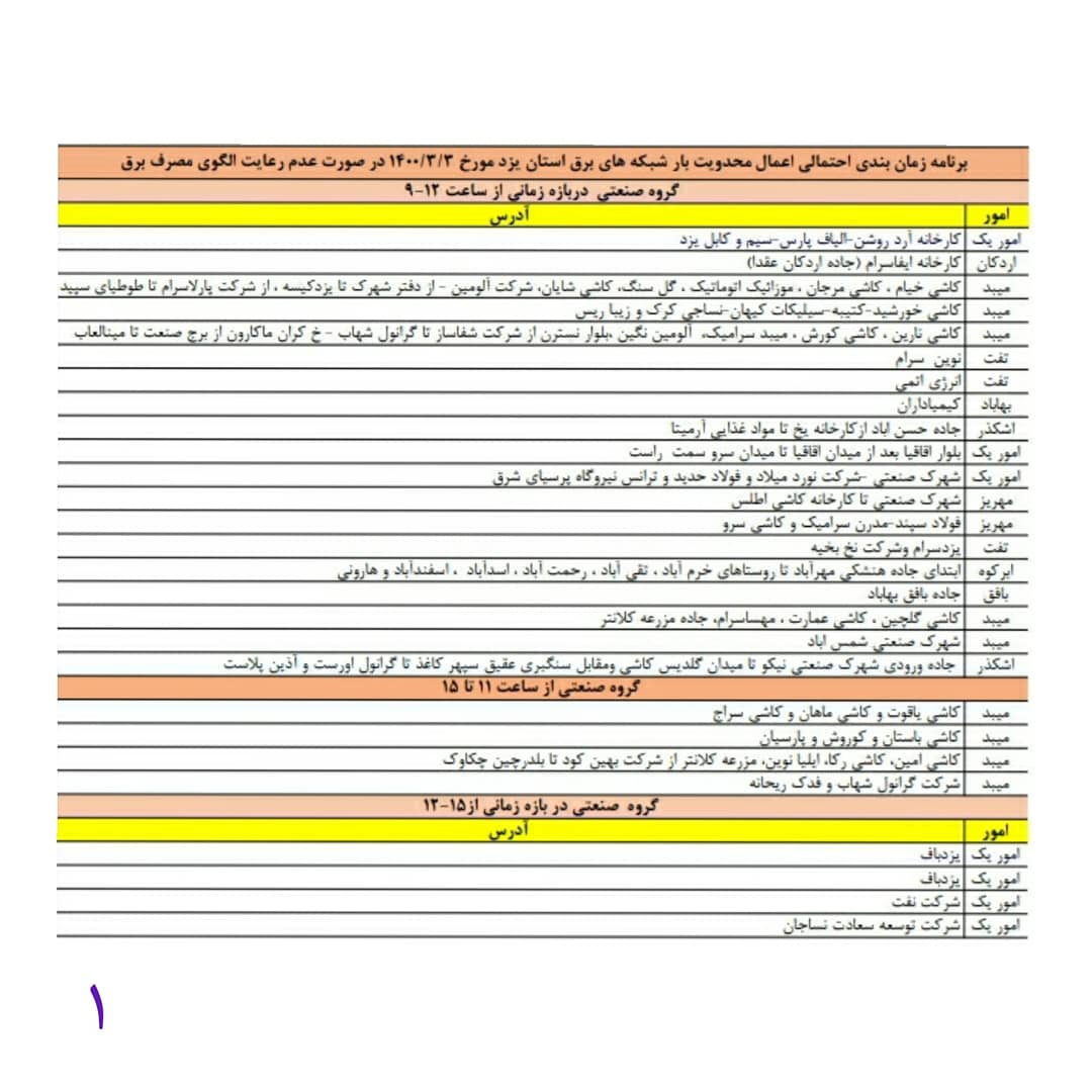 : برنامه قطع برق اضطراری استان یزد امروز مورخ دوشنبه سوم خرداد.