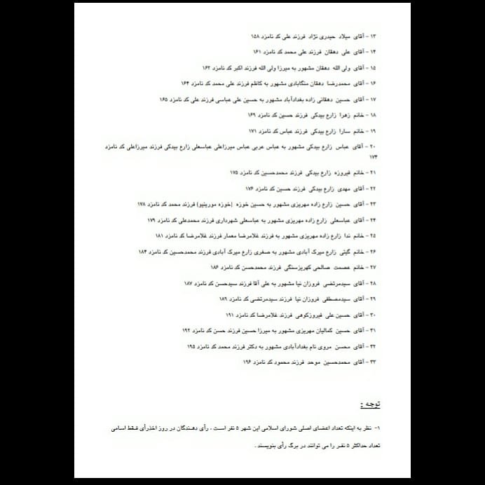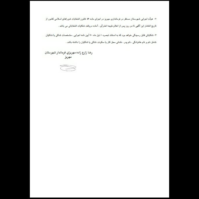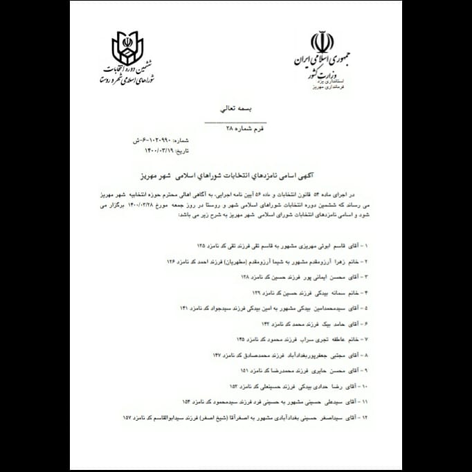 آگهى اسامى نامزدهاي انتخابات شوراهاي اسلامى شهر مهريز