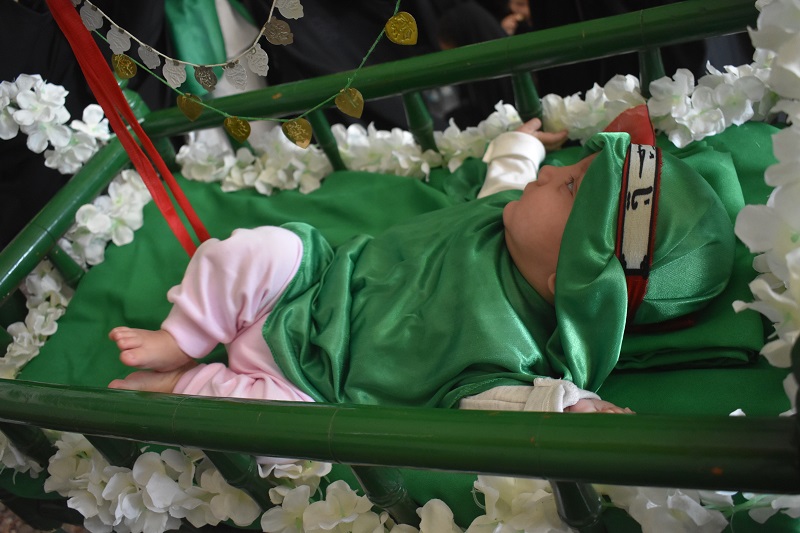 در اين همايش تعدادي از مادران نيز گهواره حضرت علي اصغر (ع) را به طور نمادين در بين جمعيت به حركت در آوردند كه حال و هوايي خاص به اين مراسم داد.