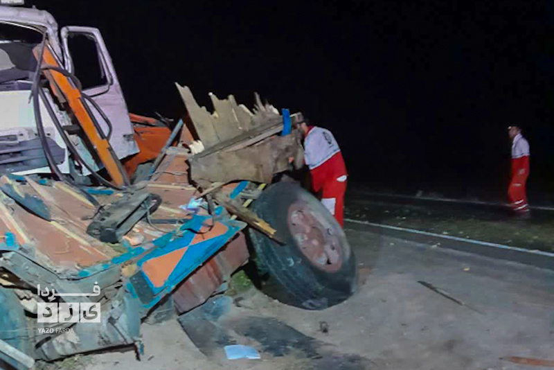 مهدی زارعی رئیس جمعیت هلال احمر شهرستان خاتم اظهار داشت : بنا به اطلاع اورژانس مبنی بر تصادف سه دستگاه خودرو سنگین ( کامیون و تریلی ) ساعت 01:50 بامداد امروز صبح در کیلومتر 15 محور مروست به مهریز بلافاصله تیم امداد و نجات پایگاه مسجد ابوالفضل مروست به محل حادثه اعزام شدند.