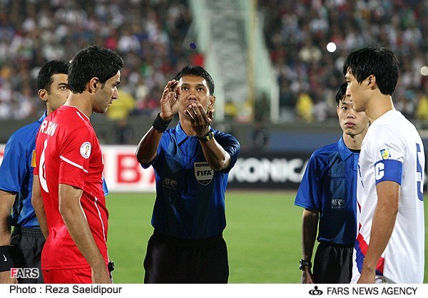 عبدالمالک بشیر داور سنگاپوری به پارک جونگ وو، پارک جو یونگ و بئموسئوک از کره و مهرداد پولادی از ایران کارت زرد نشان داد.
