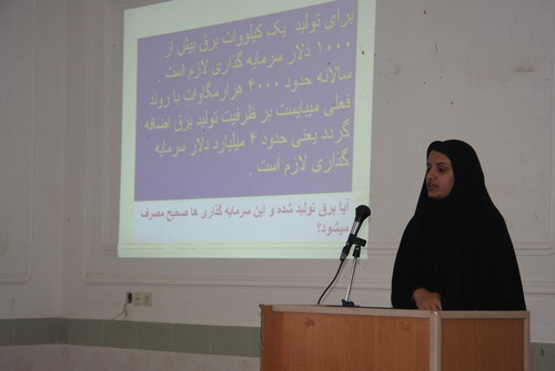 مهندس الهام اسدي نيز پس از اين سخنان،  روشهاي بهبود بهره وري در بخش كشاورزي را با بيان عوامل الكتريكي و غير الكتريكي و مقايسه تغييرات انجام شده در يك واحد كشاورزي نمونه تشريح كرد.
