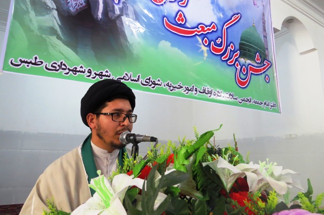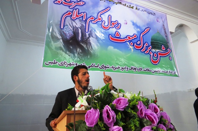 اين جشن كه با مشاركت نهاد امامت جمعه، انجمن سادات، شهرداري و شوراي اسلامي شهر و اداره اوقاف و امورخيريه برگزار شد، حجت الاسلام مهاجريان مقدم- امام جمعه و حجت الاسلام حسيني- مسوول نهاد نمايندگي ولي فقيه در بسيج ناحيه طبس سخنراني و حاج مهدي سروريان از مداحان آستان قدس رضوي، حاج جلال ابراهيمي و كربلايي محمدصادق قاضي زاده از ذاكران اهل بيت (ع) به مداحي پرداختند.