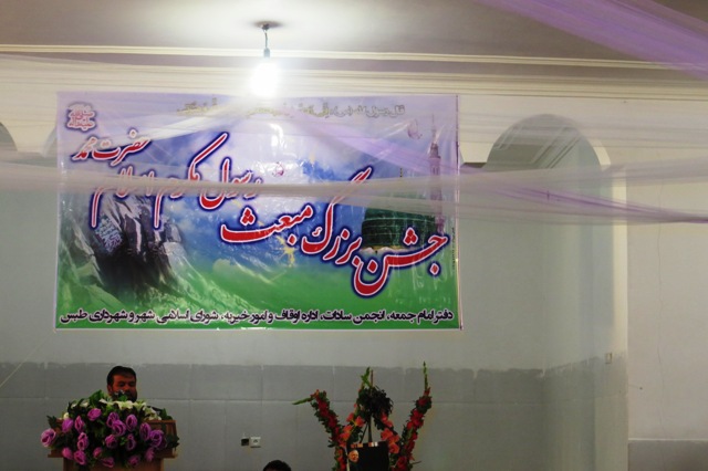 جشن بزرگ مبعث رسول مكرم اسلام (ص) با حضور امام جمعه و محمد حسين اخوان صفار- رييس شوراي اسلامي شهرستان، عليرضا عبدالرحيمي- رييس و محمود فخاري و پيام بخشي طوسي اعضاي شوراي اسلامي شهر و سادات معظم برگزار شد.