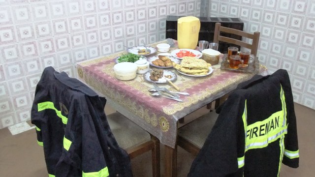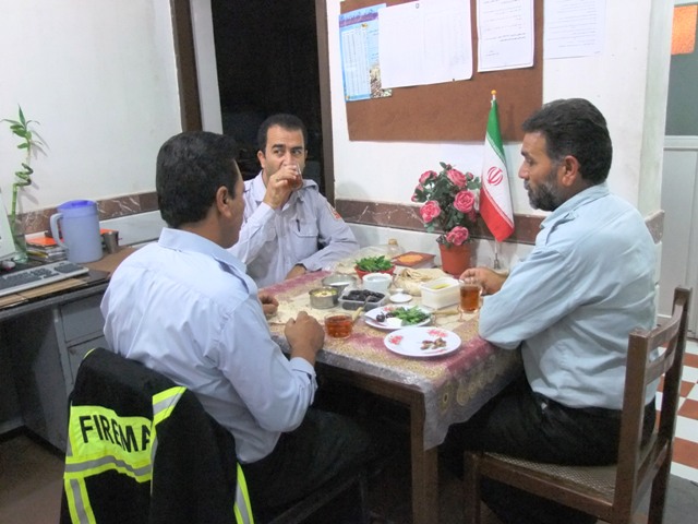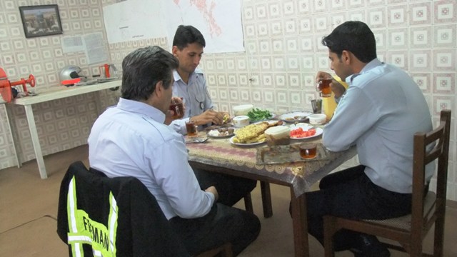 روابط عمومي شوراي اسلامي شهر و شهرداري طبس، آتش نشانان در كسوت خدمت به خلق ميهمان ضيافت الهي و سفره هاي ساده افطاري مي شوند و دور از جمع خانواده در همايشي كوچك، محيط كار خود را در ماه مبارك رمضان به عطري آسماني معطر مي كنند.