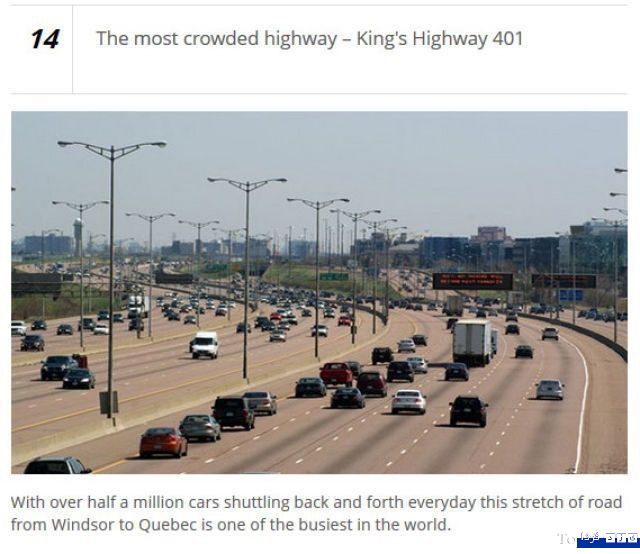 بزرگراه شماره 401 در کبک کانادا را می توان شلوغ ترین بزرگراه در جهان نامید. در این اتوبان روزانه 500 هزار اتومبیل رفت و آمد می کنند.
