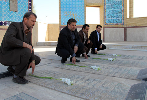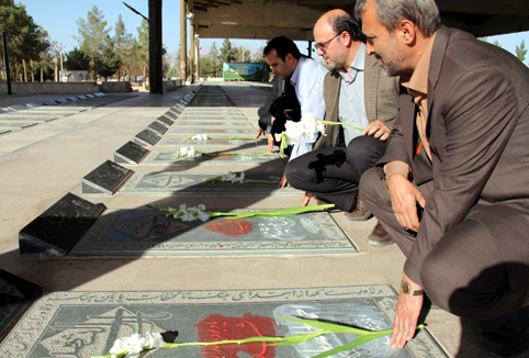 روز سه شنبه اول مهرماه جاری همزمان با دومین روز از هفته ی دفاع مقدس، اعضای هیات رییسه دانشگاه یزد بر مزار شهدای دوران دفاع مقدس در خلدبرین یزد حضور یافتند و با قرایت فاتحه و اهدای شاخه های گل به مقام شامخ آنان ادای احترام کردند.