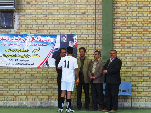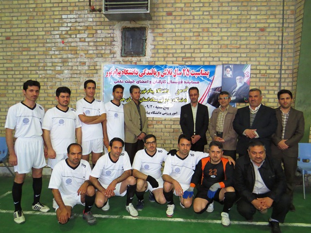 طبس- قلی زاده ثالث/ به مناسبت 25 سال تلاش و بالندگی دانشگاه پیام نور، مسابقه فوتسال کارکنان و اعضای هیئت علمی این دانشگاه در استان خراسان جنوبی به میزبانی طبس برگزار شد.