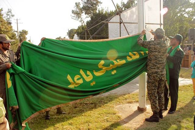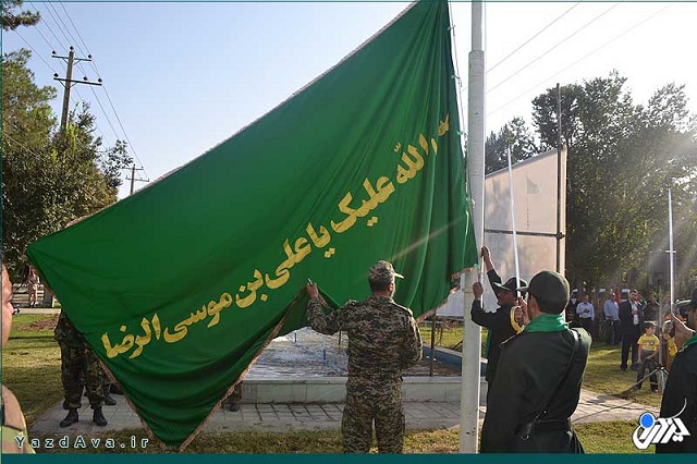 گزارش تصویری :اهتزاز پرچم متبرک حرم رضوی درمیدان امام رضا (ع) یزد