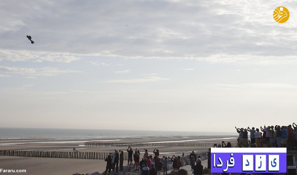 مخترع ۴۰ ساله فرانسوی با وسیله پرنده اختراعی خود ایستاده از روی کانال مانش پرواز کرد (تصاویر زیبا)