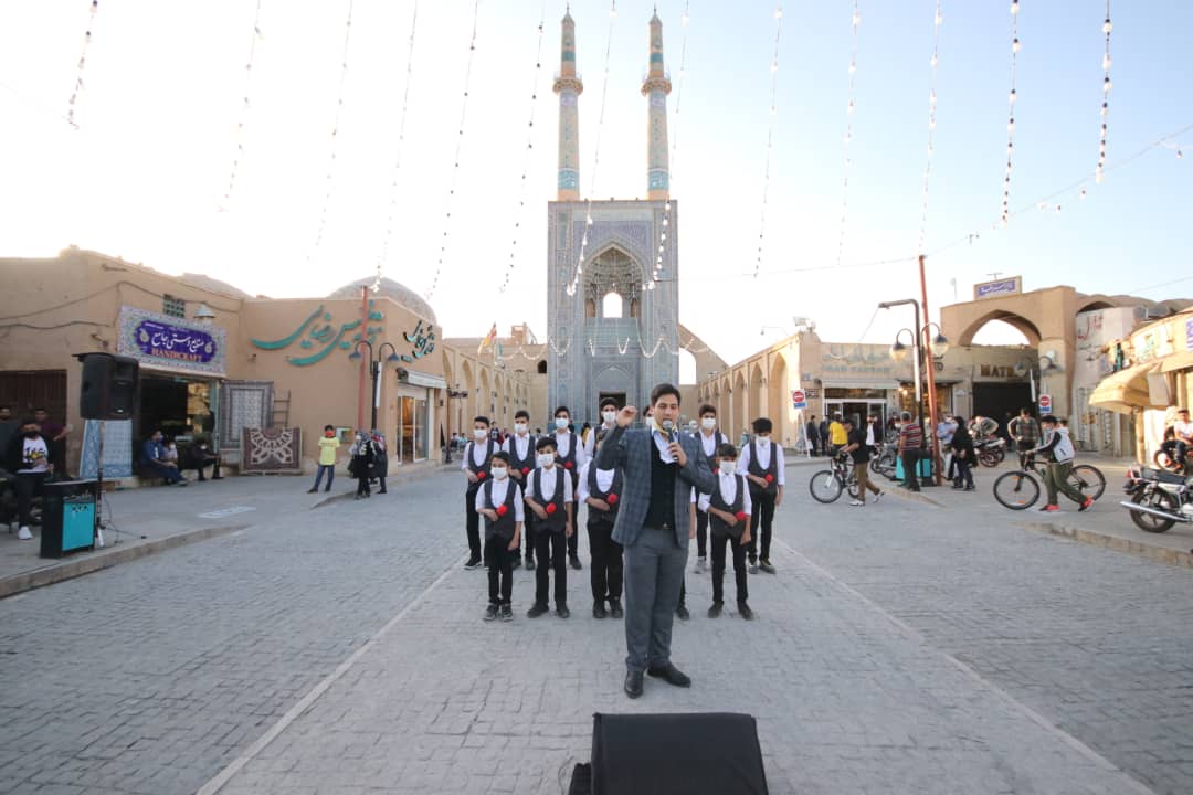اجرای سرودهای خیابانی هر روز ساعت ۱۱ و ۱۸ در امیرچقماق ، زندان اسکندر، مسجد جامع و باغ ملی