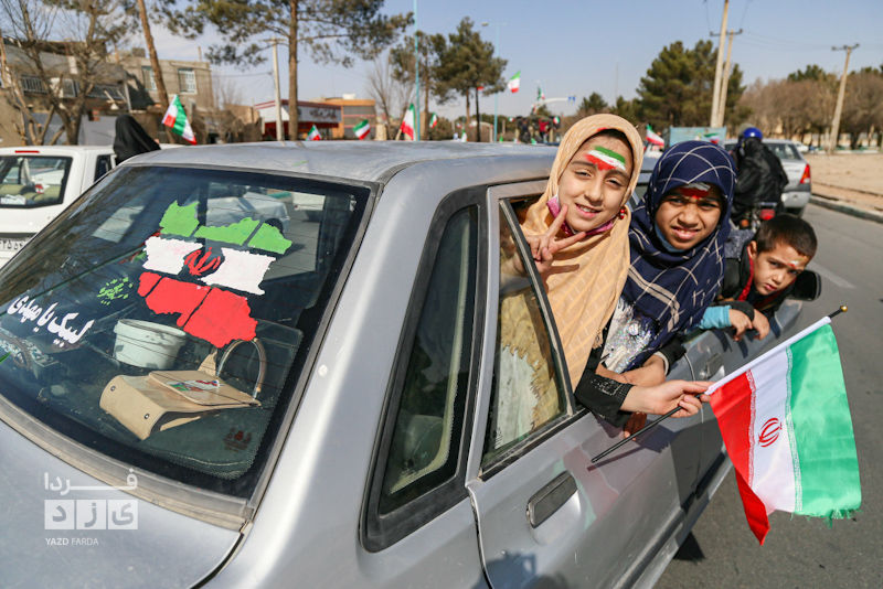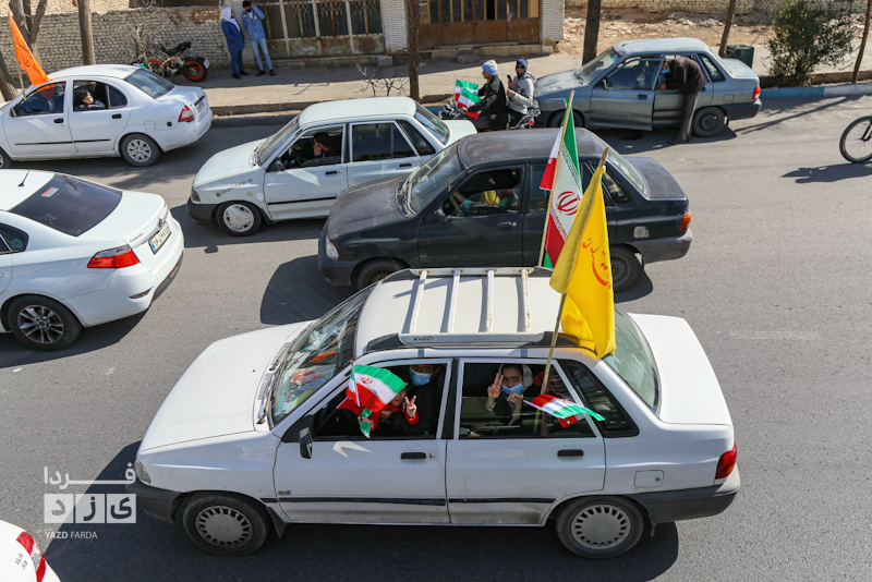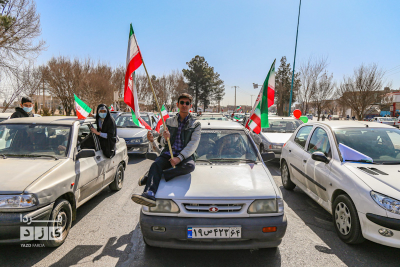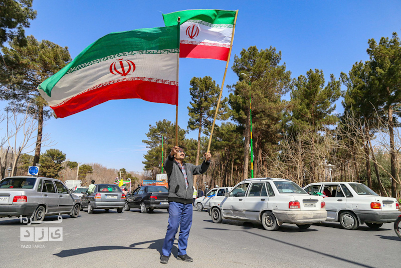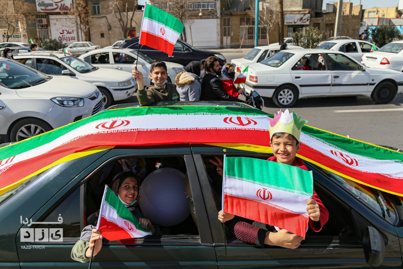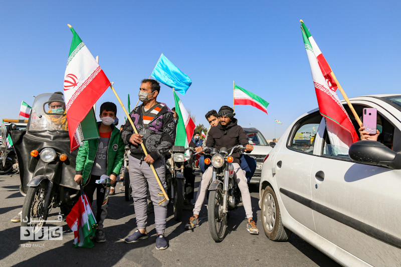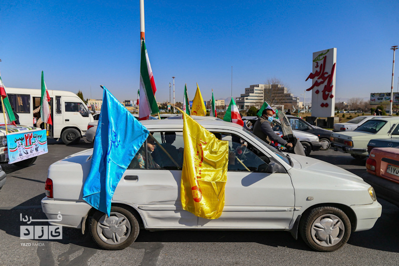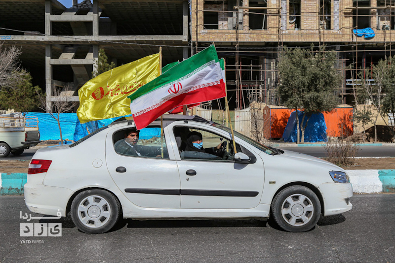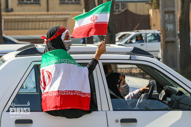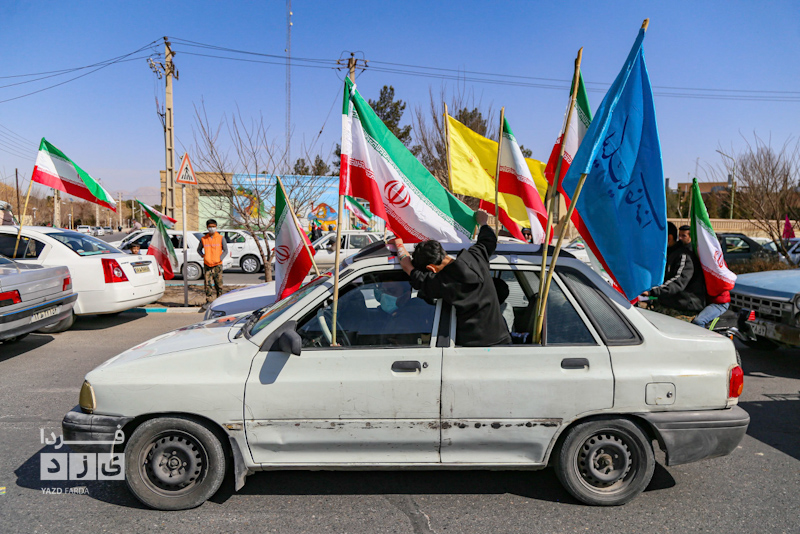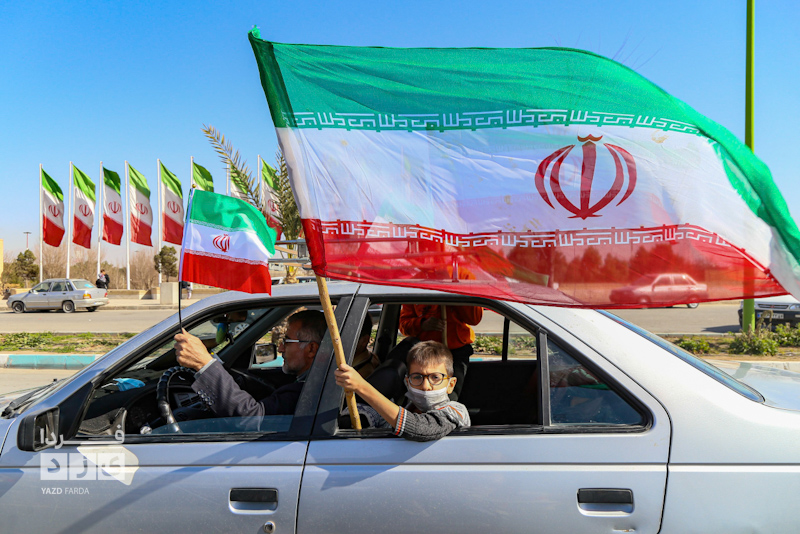 اهتزاز پرچم پرافتخار ایران اسلامی در راهپیمایی 22 بهمن یزد
