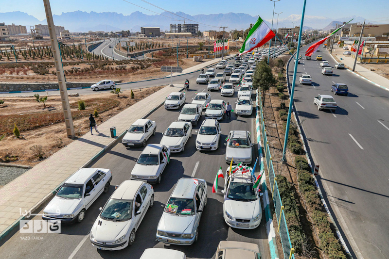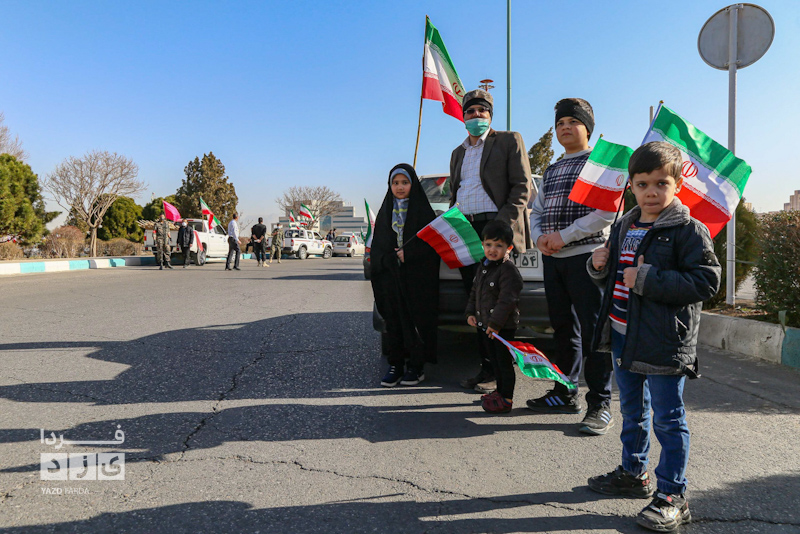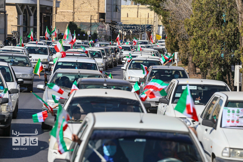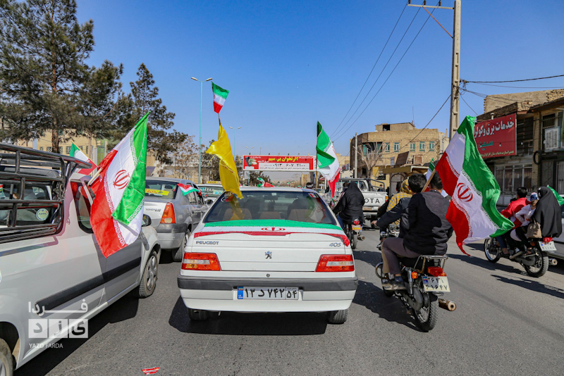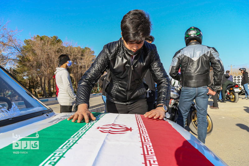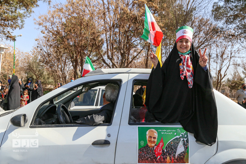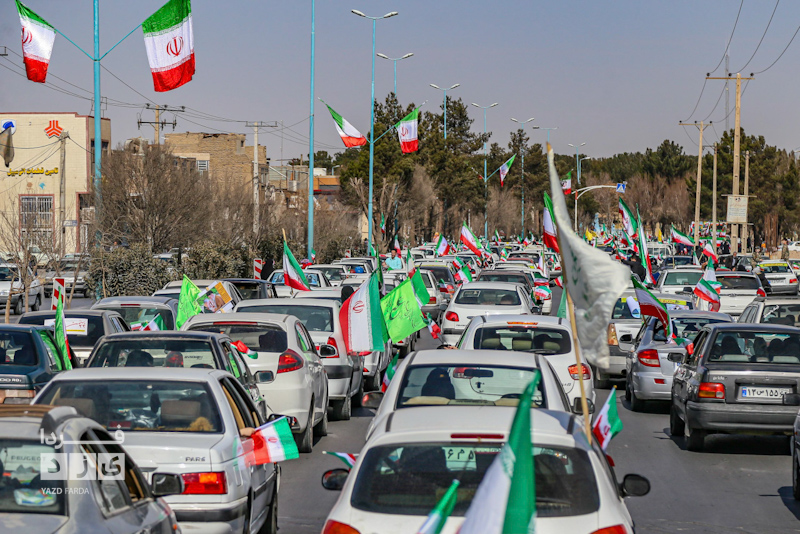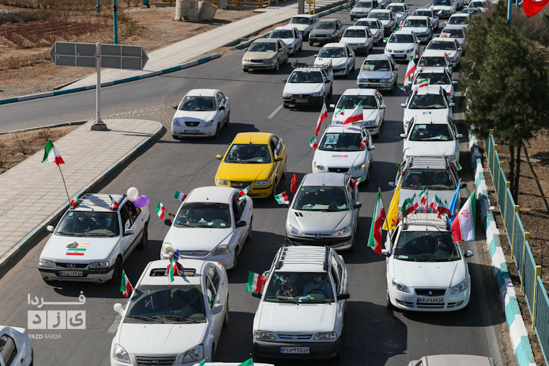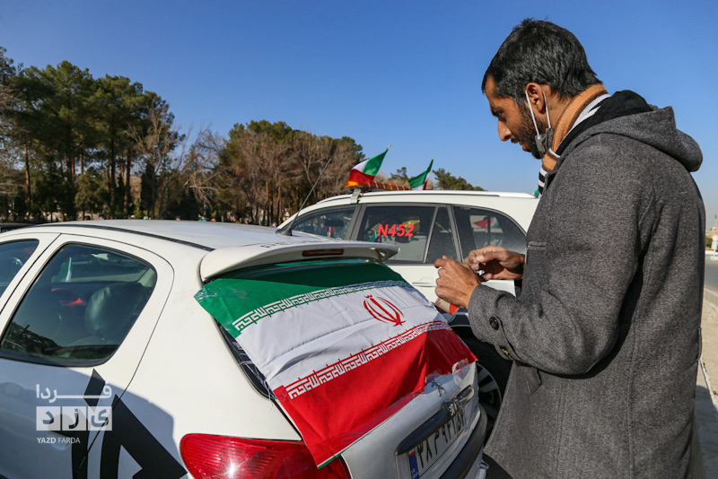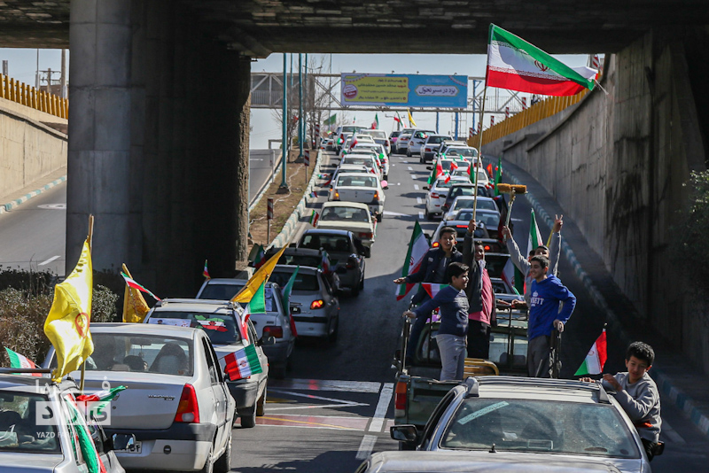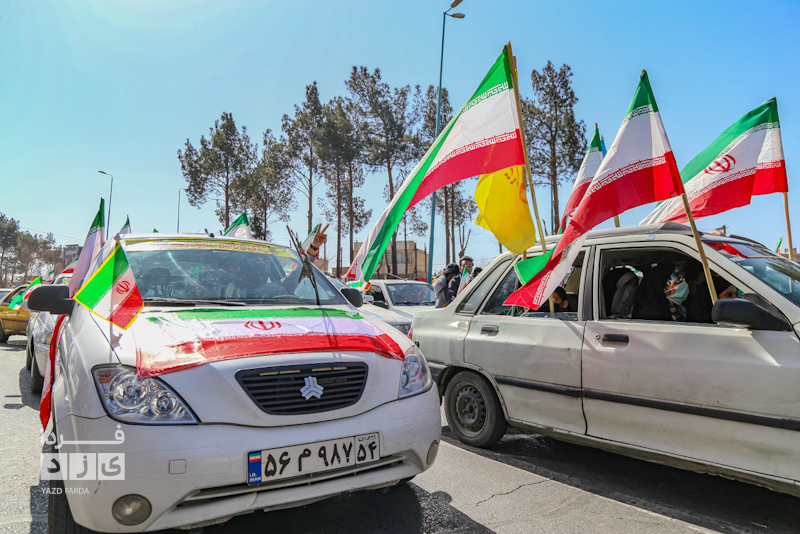 اهتزاز پرچم پرافتخار ایران اسلامی در راهپیمایی 22 بهمن یزد