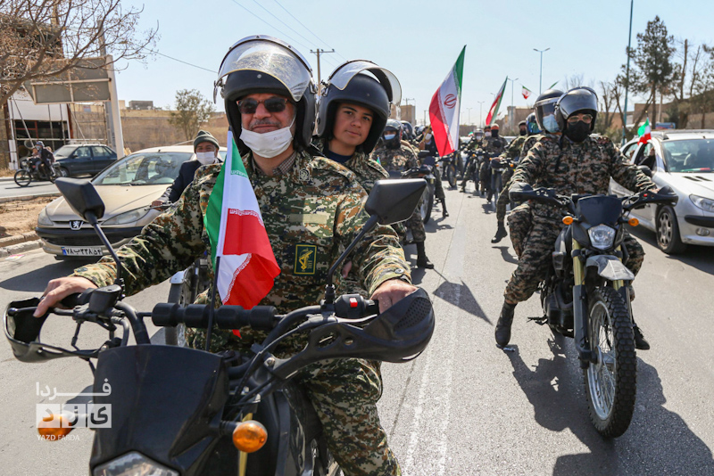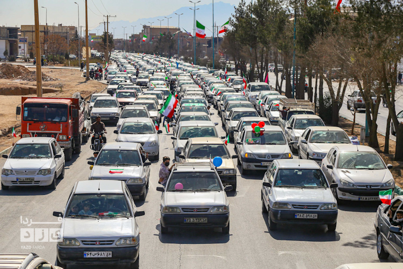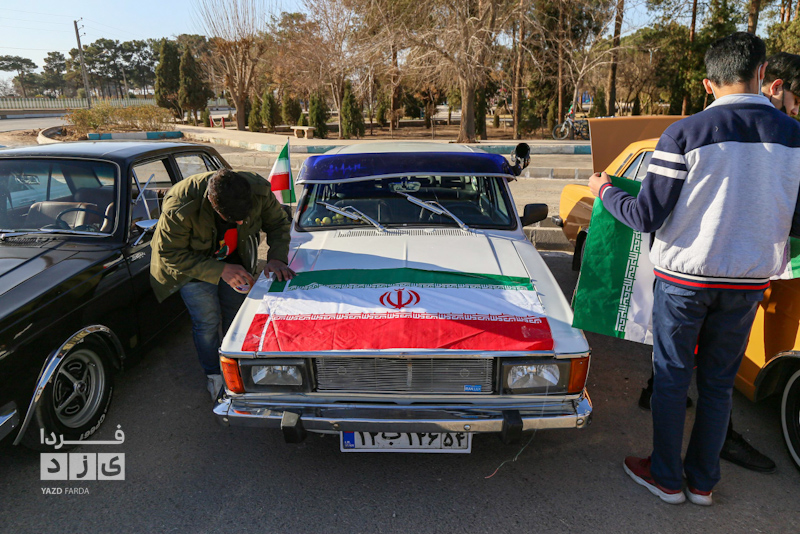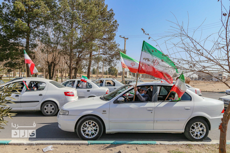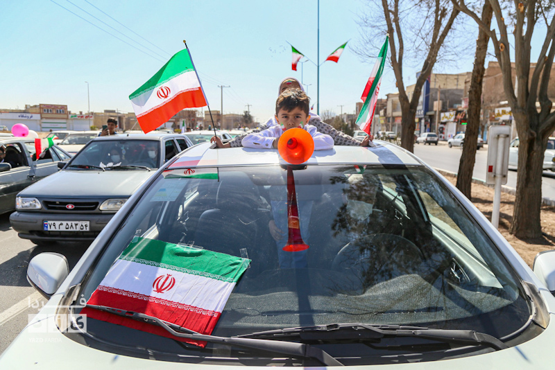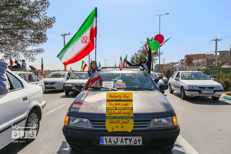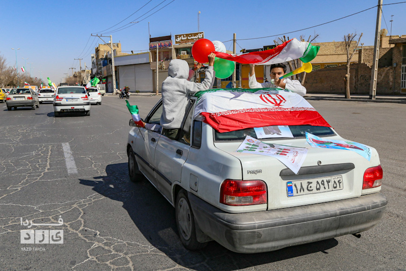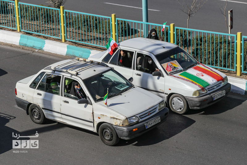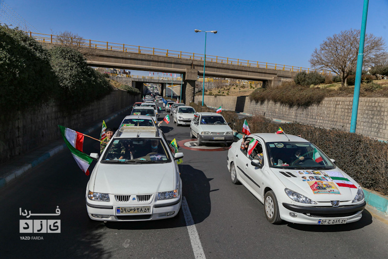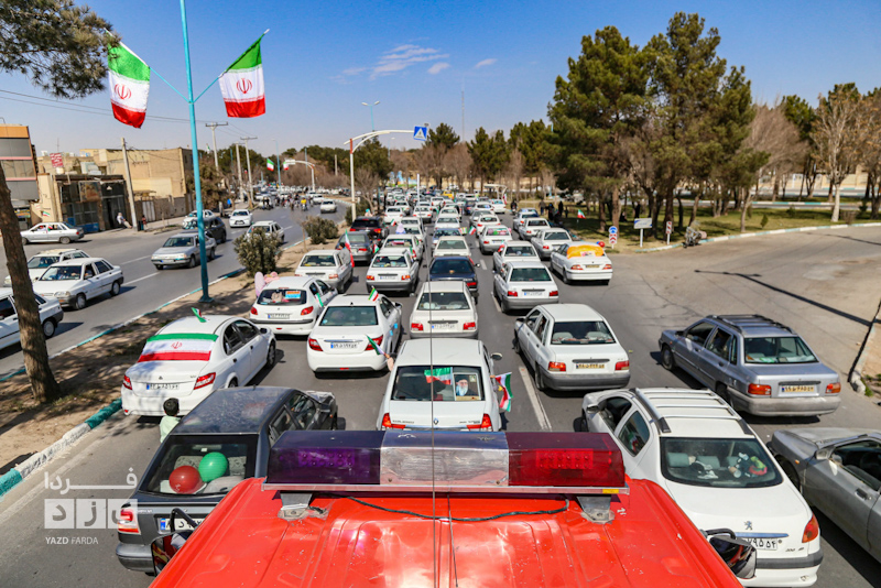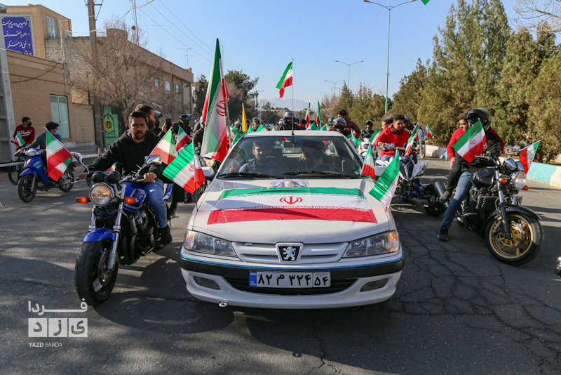 اهتزاز پرچم پرافتخار ایران اسلامی در راهپیمایی 22 بهمن یزد