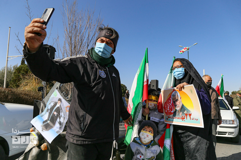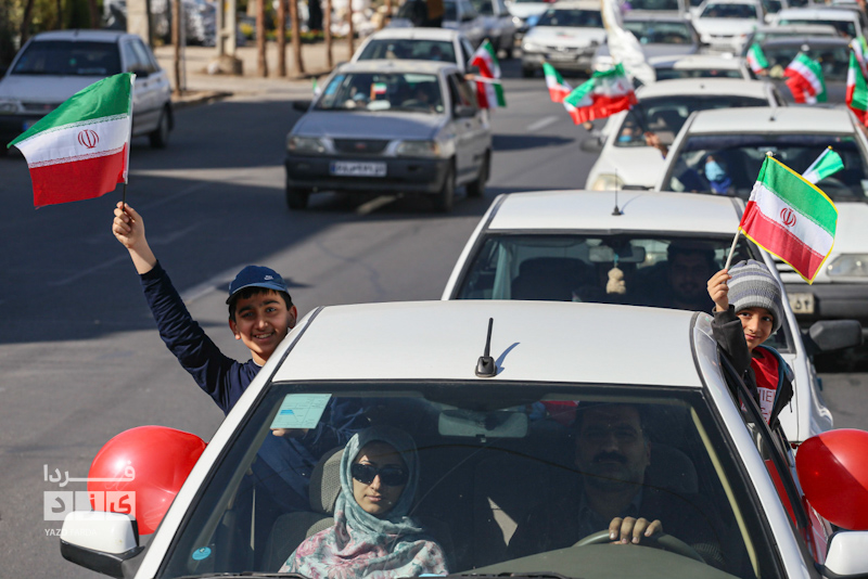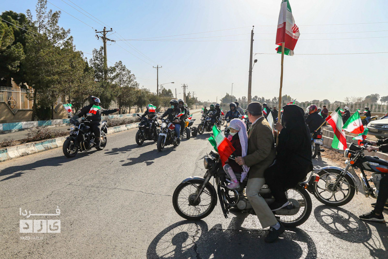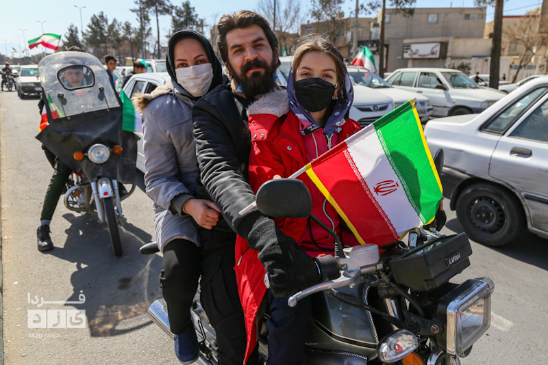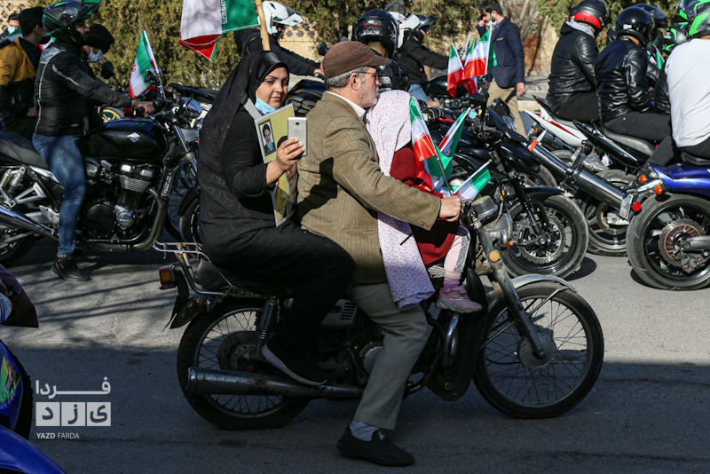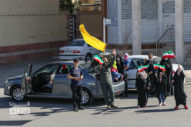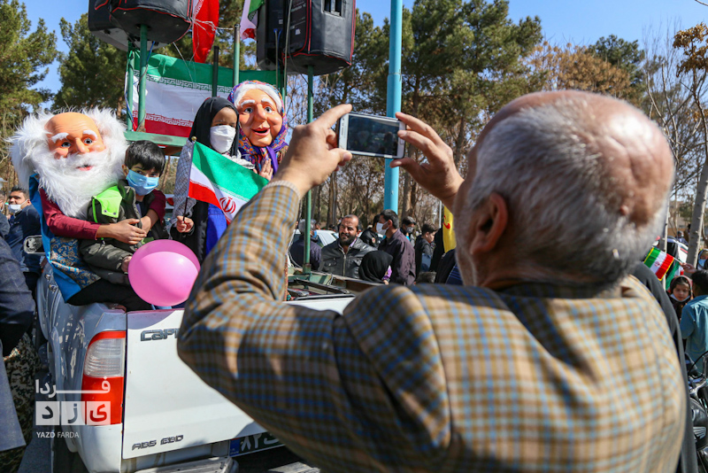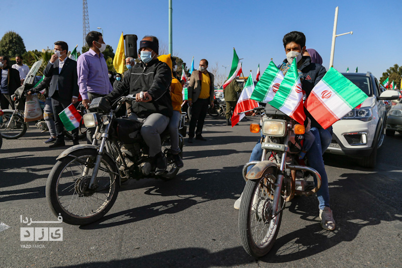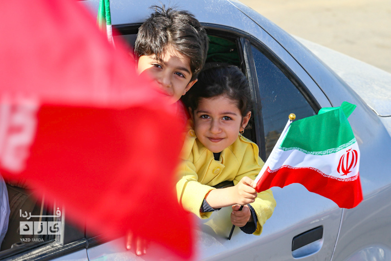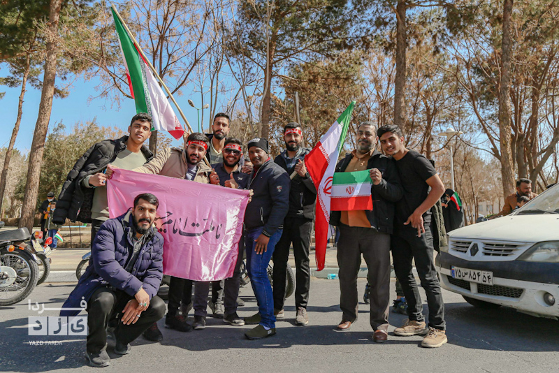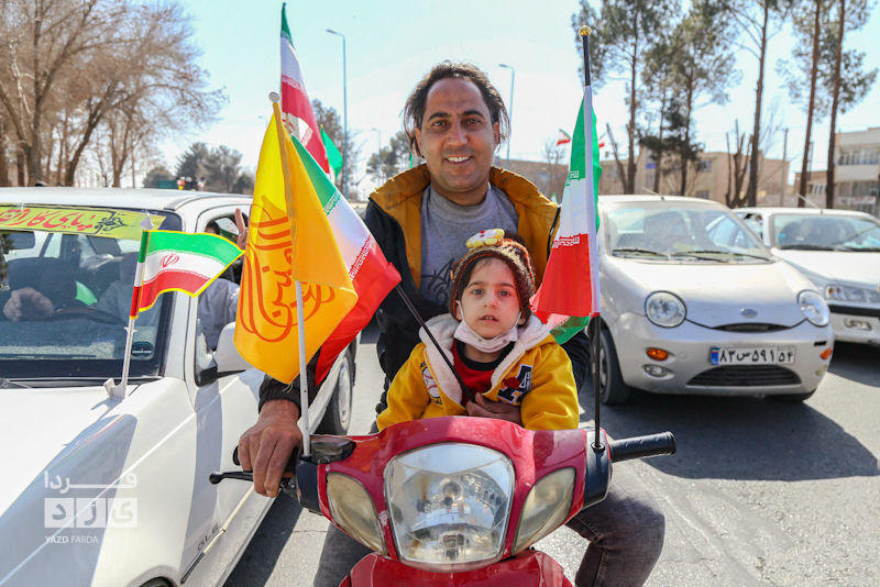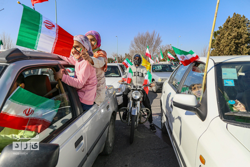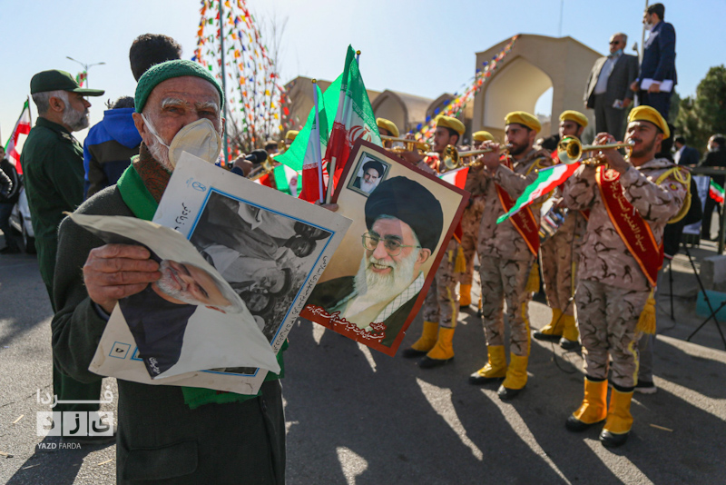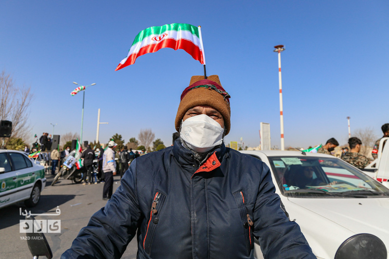 گزارش تصویری یزدفردا: اهتزاز پرچم پرافتخار ایران اسلامی در راهپیمایی 22 بهمن یزد.