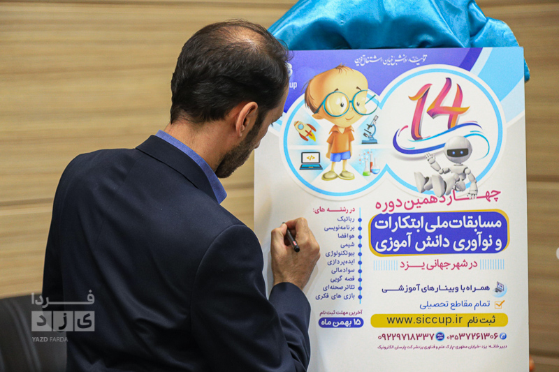 نشست ستاد نوآوری، فناوری و اقتصاد دانش بنیان استان یزد شامگاه چهارشنبه 4 آبان ماه با حضور "مهدی کاظمی" معاون آموزش متوسطه وزیر آموزش و پرورش، سیاوش ملکیفر معاون توسعه صندوق نوآوری و شکوفایی ریاست جمهوری، "مهران فاطمی" استاندار، "محمدعلی شاه حسینی" معاون توسعه مدیریت و منابع استانداری یزد و جمعی از مدیران در سالن کوثر استانداری یزد برگزار شد.