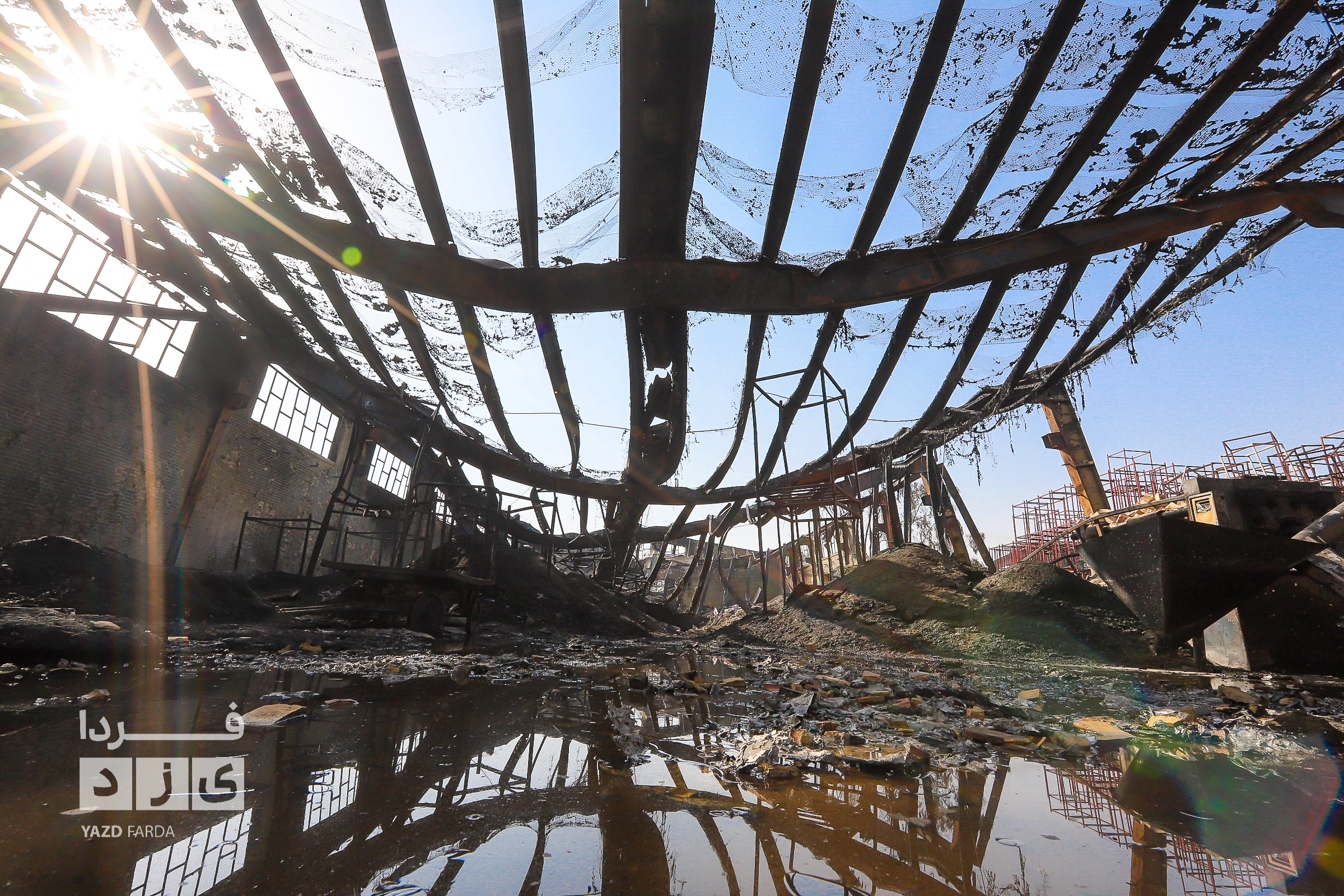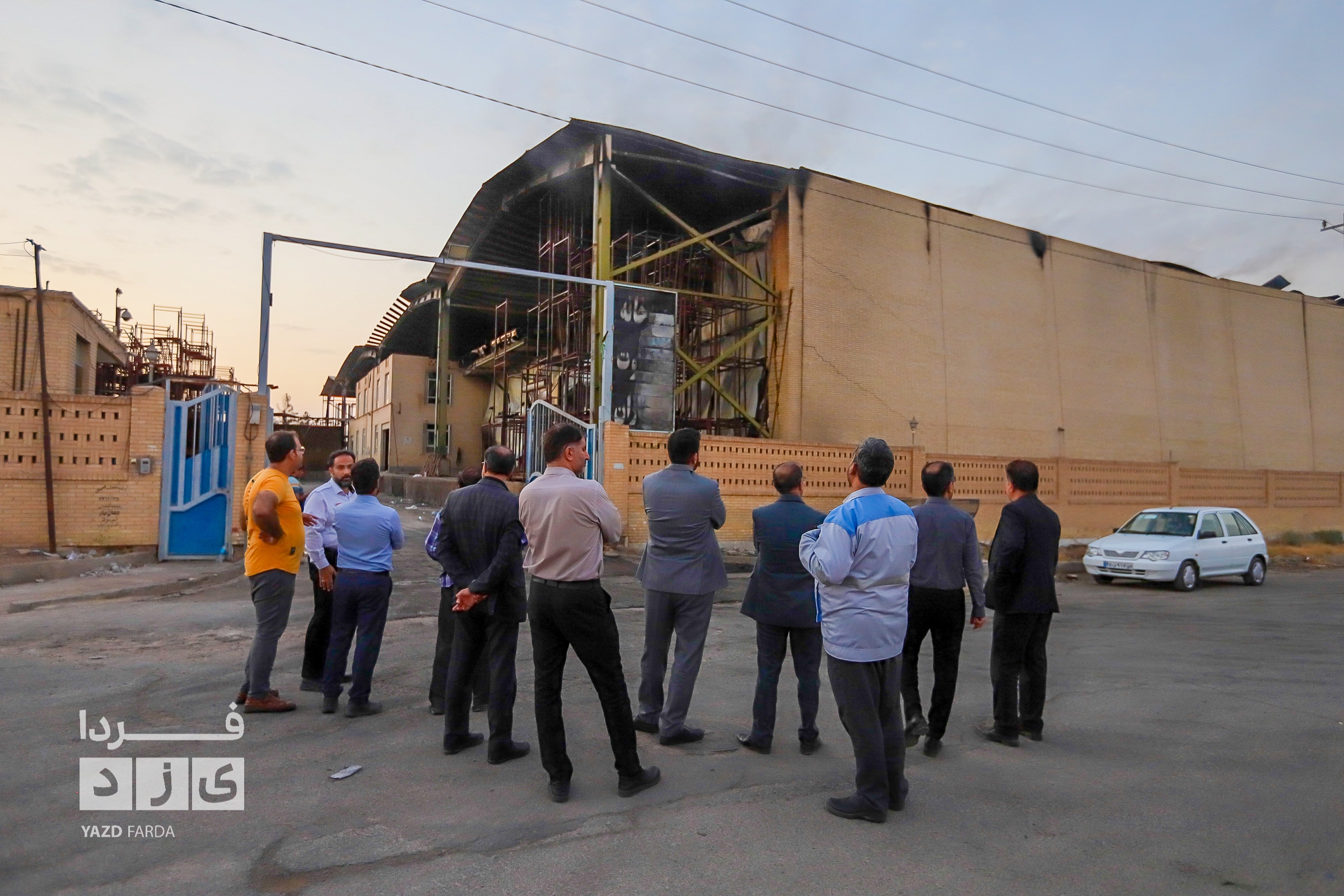 عملیات اطفاء آتش سوزی دوباره سردخانه در شهرک صنعتی و ایمن سازی محل با حضور معاون عمرانی استاندار یزد