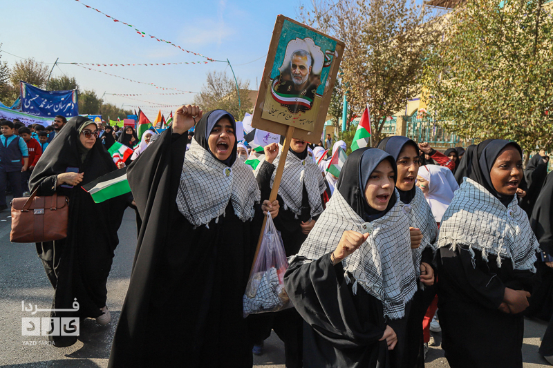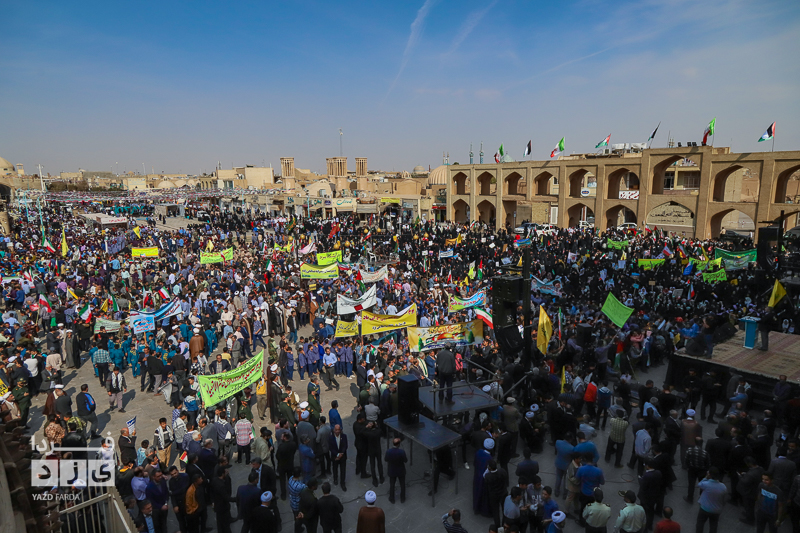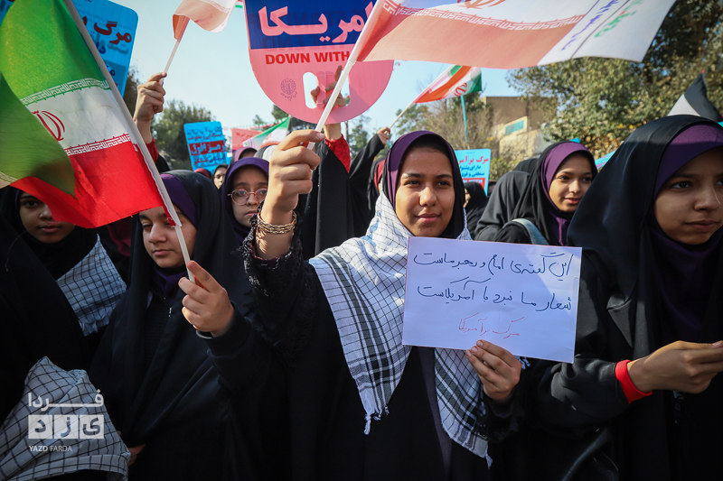 نوجوانان، دانش آموزان، مردم و مسئولان استان دارالعباده یزد با حضور پرشور و بیسابقه خود در راهپیمایی ۱۳ آبان، بار دیگر انزجار خود را از مستکبران جهان اعلام کردند.