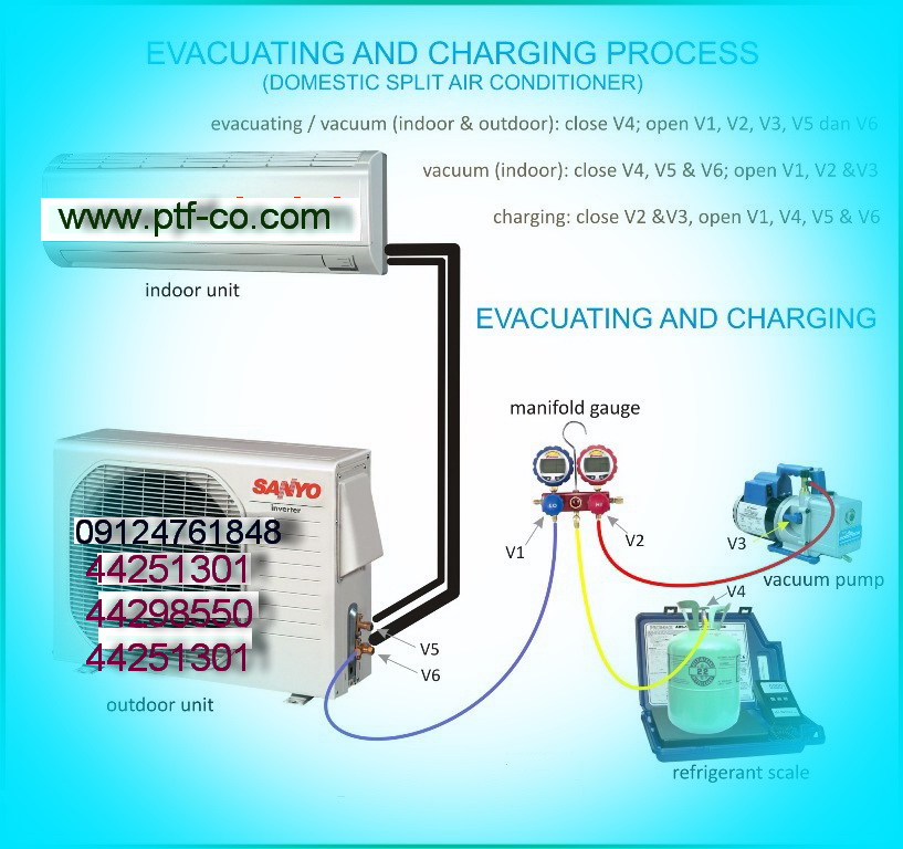 وکیوم به معنی تخلیه رطوبت و هوای داخل سیستم خنک کننده و ایجاد خلاء جهت تزریق گاز مبرّد می باشد هر چه عمل وکیوم و تخلیه بهتر انجام شود میزان خنک کنندگی دستگاه افزایش یافته و برای سرد کردن مدت زمان کمتری کمپرسور باید کار نماید در نتیجه برق کمتری مصرف و مدت عمر وسیله خنک کننده افزایش می یابد. شاید این پرسش برای بعضی وجود داشته باشد چرا بعضی از یخچالها با اندک کارکردن خنکی لازم را ایجاد ولی مشابه دیگرش برای مدت طولانی تری باید کمپرسور کار نموده تا خنک کنندگی لازم را داشته باشد؟ یکی از عللش این است که ابتدا عمل وکیوم به اندازه لازم صورت نگرفته و گاز تزریق شده است.