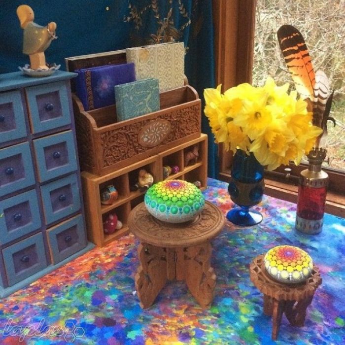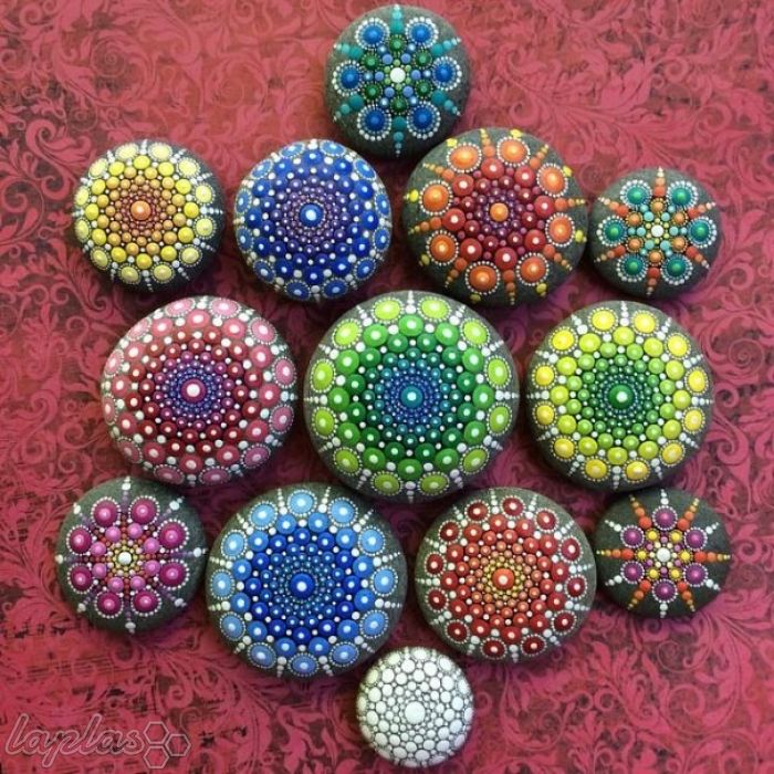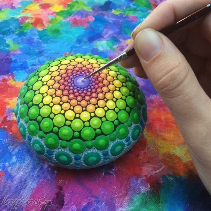 السپث مک لین، هنرمند اسپانیایی ساکن کانادا روی سنگ های کاملا گرد و صاف اقیانوس طرح های زیبا و هیپنوتیزم کننده ای می کشد که روحتان را تسکین می دهد و دنیایتان را پر از رنگ می کند. او از نقطه های رنگی کوچک استفاده می کند که کار او را متقارن تر و تسکین دهنده تر می کند. نمونه هایی از کارهای زیبا و رنگی این هنرمند را در یزد فردا مشاهده می کنید.
