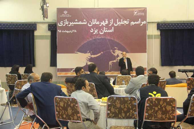 به گزارش روابط عمومی اداره کل ورزش و جوانان استان یزد ، مراسم تجلیل از قهرمانان ، مربیان و حامیان شمشیربازی در سال 94 با حضور محمدعلی طالبی معاون سیاسی امنیتی و اجتماعی استاندار یزد ، مسعود شریعتی مدیرکل ورزش و جوانان استان ، ابوالفضل کارگر معاون توسعه ورزش و رضا نارگانی مسئول روابط عمومی این اداره کل ، جلیل مازاراتابکی رئیس هیات شمشیربازی استان ، محمدحسن صدیقی دبیر ، فردوسیان و عبدالهی اعضاء هیات رئیسه هیات شمشیربازی استان و جمعی از ورزشکاران و خانواده هایشان در سالن شمشیربازی یزد برگزار شد.