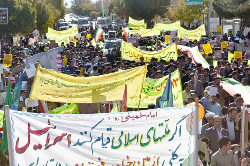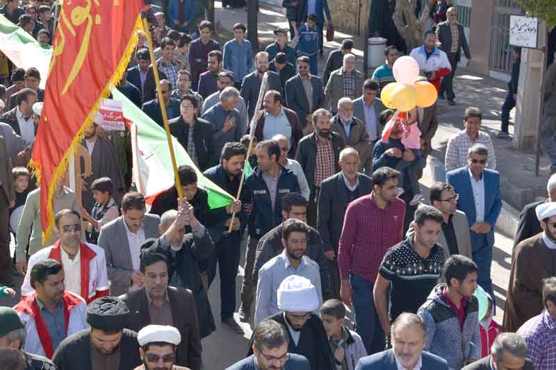 راهپیمایی ضد استبکاری 13 آبان روز یکشنبه همزمان با سراسر کشور و با حضور گسترده و پرشور اقشار مختلف مردم و مسئولان در شهرستان بهاباد برگزارشد . ۱۳ آبان ماه در میان هوای پاییزی؛ شکوفه های بصیرت و آزادی خواهی از خیابان های بهاباد جوانه زد و بار دیگر خروش فطرت های آزاده لرزه بر تن استکبار انداخت.دانش آموزان غیور این شهرستان با همراهی اقشار مختلف مردم با حضور در مراسم راهپیمایی ۱۳ آبان فریاد مرگ بر آمریکا و مرگ بر اسرائل سر دادند.حضور مسئولان از جمله ائمه جمعه و جماعات، فرماندار، معاونین فرماندار، بخشداران، فرمانده ناحیه مقاومت بسیج و جمعی از روسای ادارات شهرستان ، هم چنین طیف های مختلفی از بازاریان، بسیجیان، معلمان در مراسم مشهود بود.مراسم با شکوه راهپیمایی یوم الله ۱۳ آبان دربهاباد از ساعت 30/9 صبح از مقابل مسجد انقلاب به سمت مسجد جامع این شهرستان آغاز شد.شرکتکنندگان در راهپیمایی با حمل پلاکاردها و شعارنوشته ها، همچنین با ساخت عروسک های ترامپ، رئیس جمهور آمریکا نسبت به یاوه گویی های دشمنان واکنش نشان دادند..شرکت کنندگان درراهپیمائی درمسجد جامع بهاباد قطعنامه راهپیمائی یوم الله 13 آبان را با تکبیر مورد تائید قراردادند.حضور کودکان و نوجوانان در کنار پدران و مادران و پدر بزرگ ها و مادر بزرگ های خود زیبائی و جلوه خاصی به راهپیمائی 13 آبان ماه داده بود
