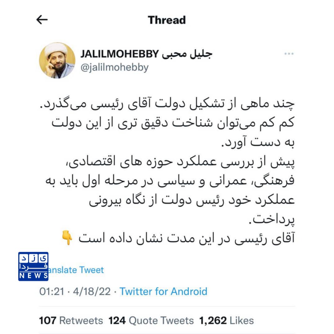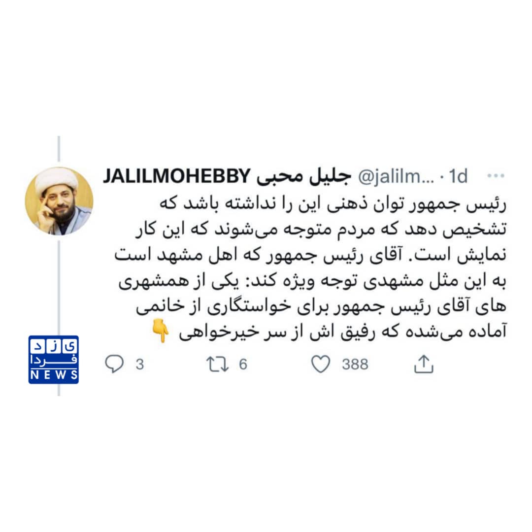 به گزارش یزدفردا: جلیل محبی روحانی اصولگرا در توییتر خود انتقادات تندی نسبت به رییس جمهور مطرح و وی را فاقد فهم کارشناسی دانست.