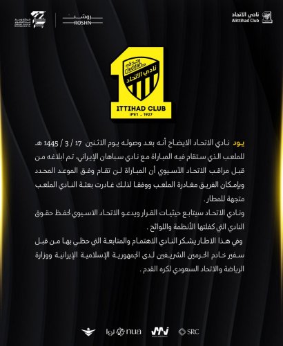 باشگاه الاتحاد صحت این تصمیم را پیگیری خواهد کرد و از AFC میخواهد که حقوق باشگاه را که طبق قوانین و مقررات تضمین شده، حفظ کند.