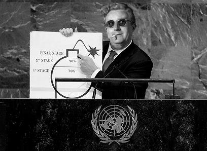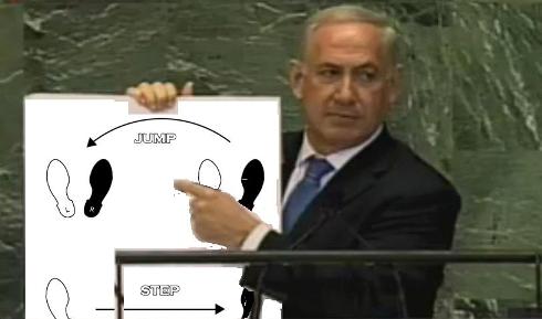 نتانياهو که خود ماژیک قرمز در دست داشت با کشیدن خط قرمز، گفت جهان باید برای ایران خط قرمز مشخص کند. او گفت که حتی اکبر هاشمی رفسنجانی، که آیتاللهی میانهرو، محسوب میشود گفته است که اسرائیل با یک بمب نابود میشود اما دنیای اسلام با توجه به وسعت آن در صورت حمله دچار چنین سرنوشتی نمیشود.