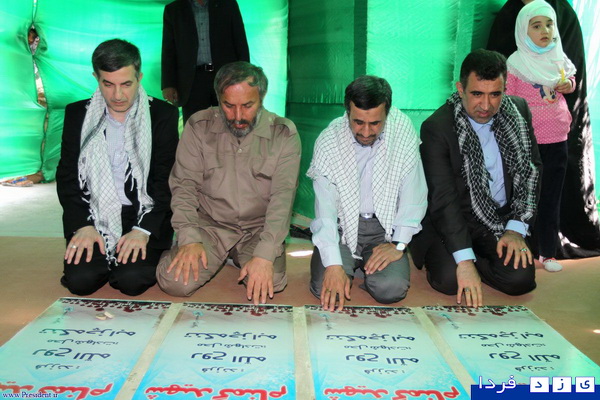 عکس: حضور مشایی با "چفیه" بر سر مزار شهدا