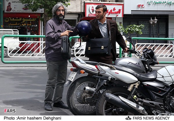 سعید جلیلی نامزد یازدهمین دوره انتخابات ریاست جمهوری عصر دیروز دوشنبه با جمعی از اقتصاددانان دیدار کرد، وحید جلیلی برادر سعید جلیلی با موتورسیکلت به این همایش آمد.