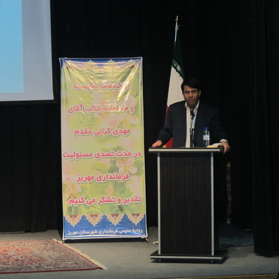 کیانی مقدم " فرماندار سابق مهریز طی سخنانی به مهمترین اقدامات صورت گرفته در مدت تصدی این مسئولیت در شهرستان اشاره و از همکاری همه آحاد مردم ولایتمدار و مدیران اجرایی استان و مهریز در تحقق برنامه ها قدردانی کرد .