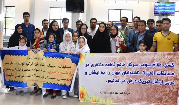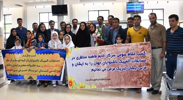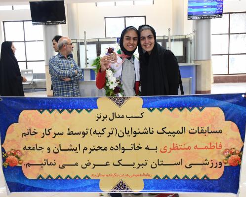 یزد فردا : به گزارش روابط عمومی هیئت تکواندو استان یزد؛ مراسم استقبال از فاطمه منتظری، تکواندوکار یزدی و دارنده مدال برنز در مسابقات المپیک ناشنوایان2017(ترکیه) با حضور مسئولین استان و ورزشکاران در فرودگاه شهید صدوقی یزد برگزار شد.