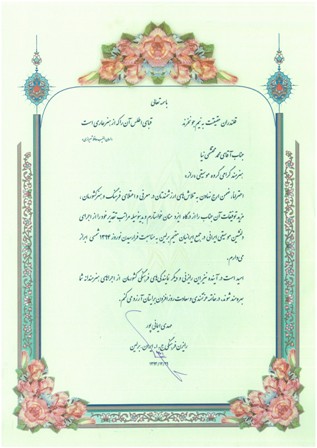 رایزن فرهنگی جمهوری اسلامی ایران ، ابتدای لوح تقدیراهدائی خود را با این بیت از شعر حافظ آغاز نموده است که :