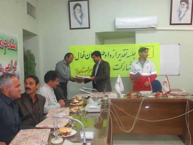در پایان این مراسم از 30 نفر از داوطلبان برتر اجرايي جمعیت هلال احمر شهرستان یزد تقدیر شد .