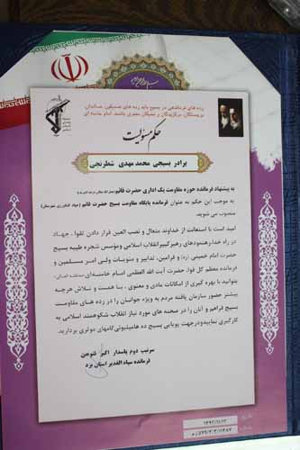 سرهنگ زارع فرمانده حوزه يك اداري پايگاه حضرت قائم(عج) استانداري نيز با بيان خصوصيات يك بسيجي نمونه از پايگاه جهادشهرستان در رابطه با پيشقدم بودن در امور اينترنتي و داشتن سامانه پيام كوتاه تقدير و تشكر كرد