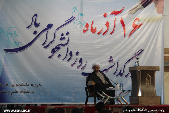 به گزارش روابط عمومي دانشگاه علم و هنر، روز 16 آذر كه مزين به نام (روز دانشجو) است. دانشگاه علم و هنر ميزبان حجه الاسلام و المسلمين دهنوي كارشناس و مشاور تربیتی و امور جوانان و خانواده در صدا و سیمای جمهوری اسلامی ایران بود .