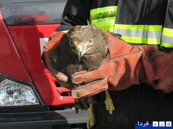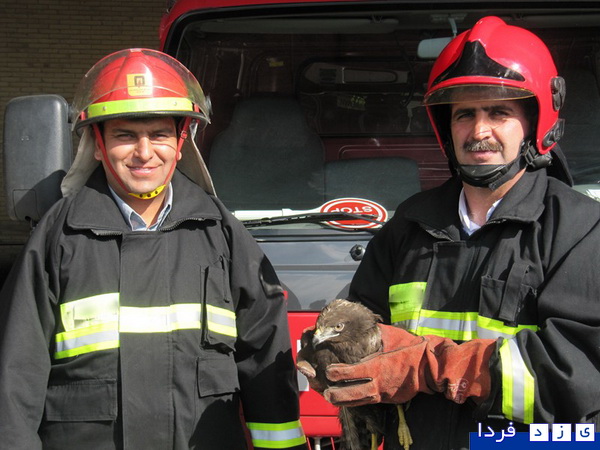 عکس خبری: آتش نشانان یزدی پرنده شکاری را در منزل مسکونی به دام انداختند